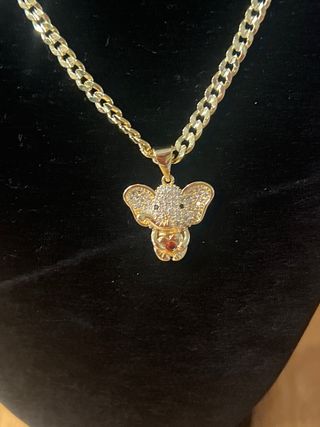 Elegante cadena con colgante de elefante bebé, laminada en oro de 14 quilates. - Diseño detallado del elefante. - Cadena tipo cubana. - Acabado brillante -cadena de 45cm.