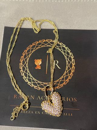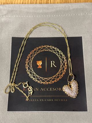 Elegante cadena con colgante de corazón, laminada en oro de 14 quilates. - Largo de la cadena: 45 cm. - Diseño de corazón adornado con pequeñas piedras brillantes. - Cierre seguro y fácil de usar.