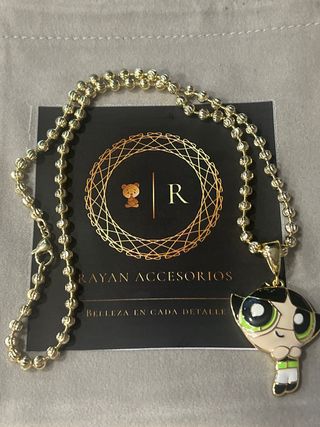 Cadena con colgante de personaje de dibujos animados. - Cadena estilo bolitas. - Baño de oro de 14 quilates. - Largo de 45 cm. - Colgante con esmalte de colores.