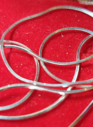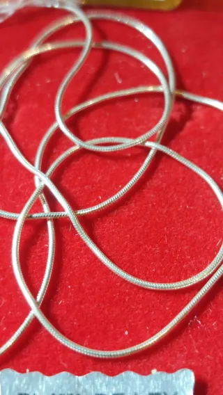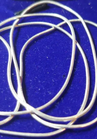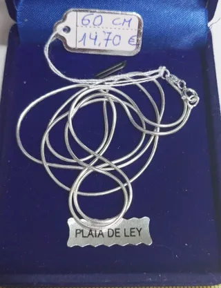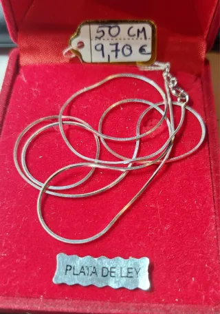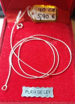 Cadena de 40cm de Plata de Ley 925. Total de peso 1,50gr. Sencilla, Elegante y Recia de Plata auténtica. Fíjese bien en el tamaño porque en las fotos parece más grande pero es CORTA y muy DELGADA. Está fotografiada sobre un metro para que la midan bien antes de comprar, por favor. Tiene el cierre de reasa, auténtico de las Cadenas de Plata de Verdad.