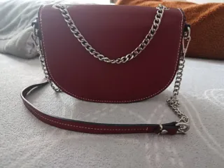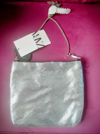 Bolso de mano o de hombro con cadena plateada. - Diseño moderno y elegante. - Acabado con pequeños detalles brillantes. - Cierre de cremallera.