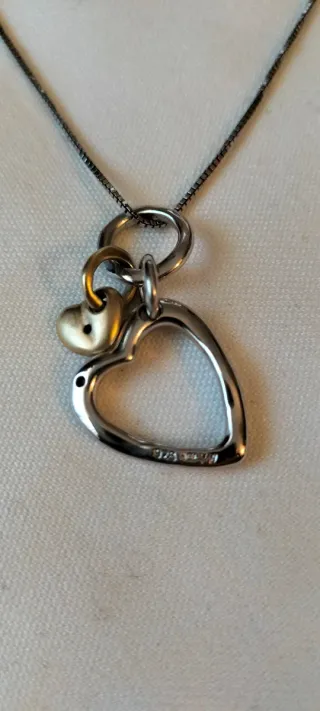 Elegante colgante con forma de corazón, ideal para añadir un toque especial a tu estilo. - Diseño de corazón abierto. - Pequeño corazón adicional. - Cadena fina.