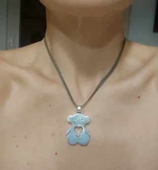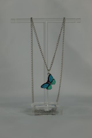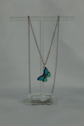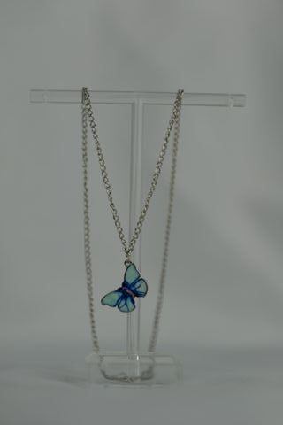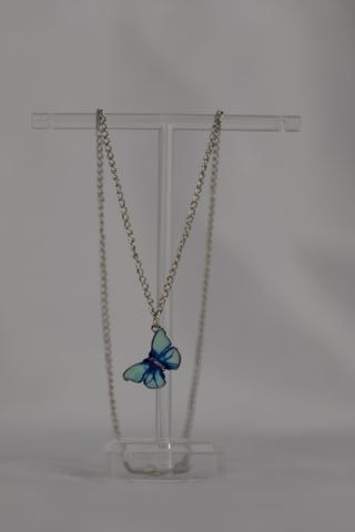 Collar con colgante de mariposa en tonos azules y turquesa, con acabado esmaltado y detalles delicados. Incluye cadena metálica en color plateado, ligera y cómoda para el uso diario. Diseño elegante y juvenil, perfecto para looks casuales o para dar un toque especial de color. Estado: muy bueno, sin signos visibles de uso. 📦 Se envía bien protegido.