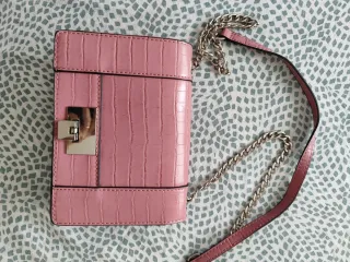 Bolso de mano con un diseño moderno y elegante. Su tamaño es ideal para llevar lo esencial. - Cadena metálica plateada. - Cierre de cremallera.