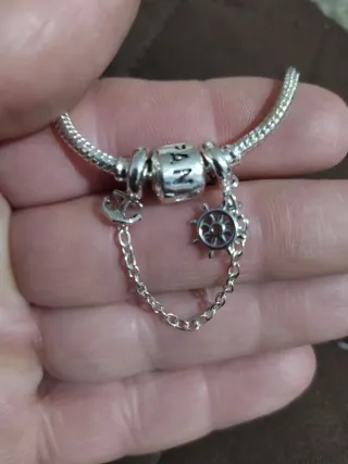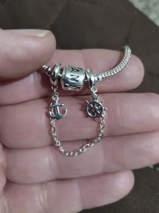Cadena de seguridad para pulsera de plata de ley con detalles de ancla y timón. Hago envíos y lleva bolsita. Nuevo. Está cadena no es de Pandora. - Plata de ley S925 - Diseño náutico con ancla y timón. - Cierre seguro.