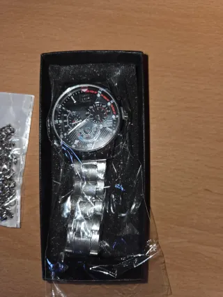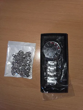 Reloj de pulsera con cadena a juego. - Diseño moderno y elegante. - Brazalete de eslabones plateados.