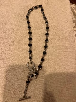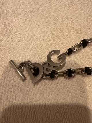 Elegante cadena de la marca Dolce & Gabbana. - Diseño con eslabones plateados y detalles en negro. - Cierre de tipo T. - Logo de la marca integrado.