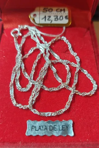 Cadena de 50cm de Plata de Ley 925. Total de peso 1,71gr. Sencillas, Clásica y Elegante de Plata auténtica. Fíjese bien en el tamaño porque en las fotos parece más gruesa pero es muy FINA. Está fotografiada sobre un metro para que la midan bien antes de comprar, por favor. Tiene el cierre de reasa, auténtico de las Cadenas de Plata de Verdad.