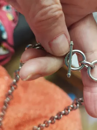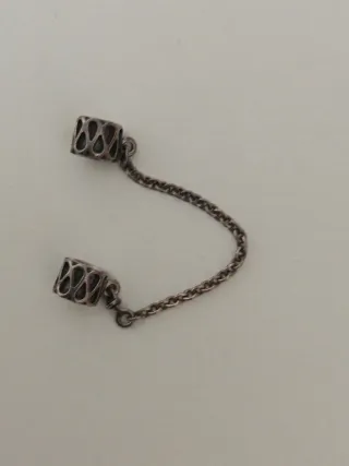 Cadena de seguridad original Pandora en plata de ley 925, usada pero en muy buen estado. Antigüedad: Más de 14 años, pieza vintage y coleccionable. Estado: Usada – signos leves de uso normales por la antigüedad. Compatibilidad: Pulseras Pandora Moments y similares. Diseño: Funcional y elegante, mantiene tus charms en su lugar y evita que se caigan. Incluye: Cadena de seguridad (sin caja).