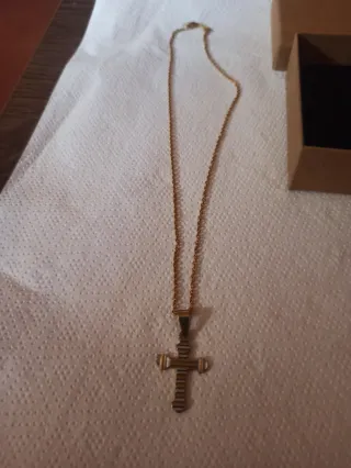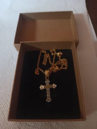 Elegante conjunto de cadena y cruz. - Diseño de cruz con detalles en dorado y plateado. - Cadena de eslabones finos.hago envio, no ofertas.