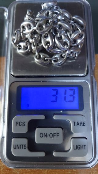 Elegante cadena de plata con eslabones tipo calabrote. Perfecta para añadir un toque distintivo a tu estilo. - Longitud: 55 cm. - Ancho: 8 mm. - Peso: 31,3 g. EL PRECIO. NO ES NEGOCIABLE. NO INSISTAS. BLOQUEO. NO COMPRA QUIEN QUIERE, SINO QUIEN PUEDE. ENVÍO SÓLO POR CORREOS Y PAGO POR WALLAPOP. LA CADENA ESTÁ CONTRASTADA LO QUE LE HACE UNA PIEZA DE PLATA DE LEY 925 MILÉSIMAS. NADA DE CHAPADOS NI DE GUARRERÍAS DE BISUTERIA CHINA.