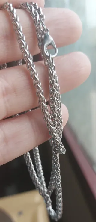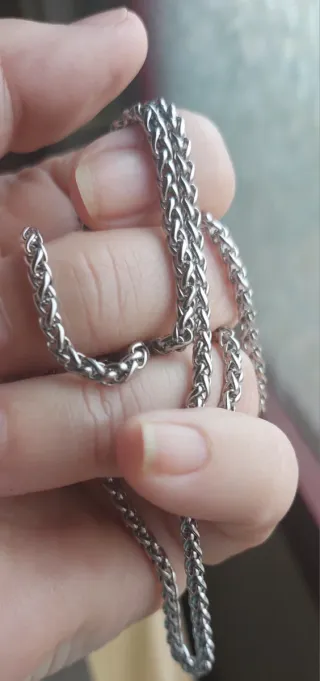 Cadena de acero plateado estilo espiga. 56cm