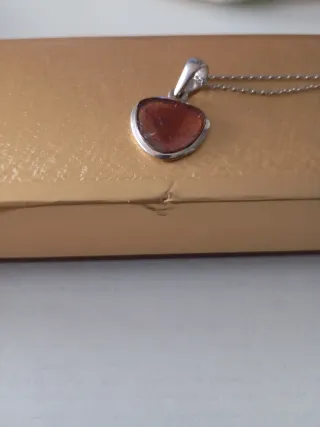 Elegante colgante con forma de corazón y una piedra de turmalina en tonos anaranjados. La cadena es fina y delicada. - Colgante con piedra semipreciosa. - Cadena de plata. - Cierre de mosquetón.