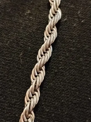 Elegante cadena plateada con un diseño trenzado que le da un toque especial. - Acabado brillante. - Diseño de cuerda o trenzado.