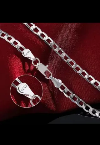Elegante cadena unisex con un diseño de eslabones tipo Figaro. Mide 55 cm/4mm de largo y tiene un baño de plata 925. Nueva con cajita de regalo 🎁 - Diseño Figaro. - Baño de plata 925. - Longitud de 55 cm./4mm