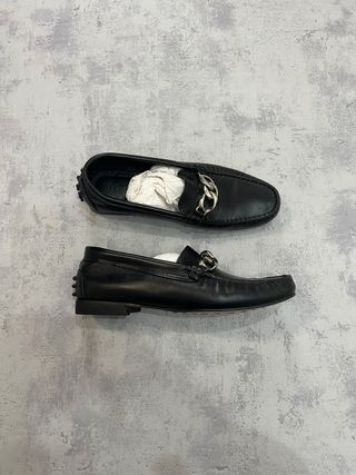 Mocasines de piel negros con cadena