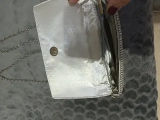 Bolso clutch plateado metalizado cadena