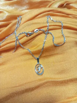 Elegante cadena de plata con un colgante circular. - Material: Plata.45 cm de largo - Diseño del colgante: Letra 'P' estilizada.