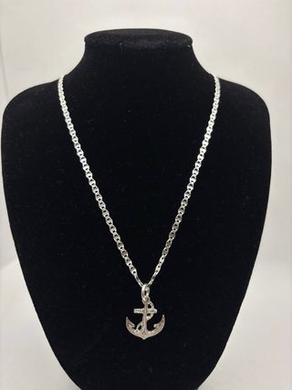 Elegante cadena de plata 925 con un colgante de ancla. - Diseño de ancla detallado. - Cadena tipo marinera. largo 55cm o 60cm