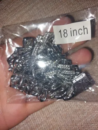 Cadena de acero inoxidable con un diseño llamativo y brillante. Mide 18 pulgadas de largo. - Material: Acero inoxidable. - Longitud: 18 pulgadas. - Acabado: Plateado brillante.