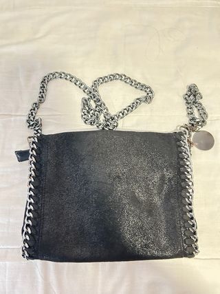 Elegante bolso de mano con un diseño moderno y sofisticado. Perfecto para complementar cualquier atuendo. - Acabado en piel sintética. - Correa de cadena plateada. - Cierre de solapa con detalle metálico.
