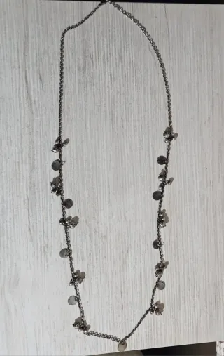 Elegante collar con una cadena fina y múltiples colgantes. - Diseño delicado con pequeños adornos. - Acabado metálico brillante. Buen Estado PRECIO NO NEGOCIABLE Hablar conmigo antes de comprar