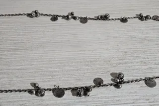Collar de bisutería con un diseño delicado de flores. - Cadena con eslabones. - Adornos en forma de flor con espiral central.