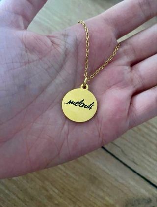 💸 PRECIO NO NEGOCIABLE 📦 Envíos: Envio todo los días por Correos e Inpost (excluyendo fines de semana) ❌ NO HAGO ENTREGAS EN MANO 💗Material: Acero inoxidable hipoalergénico, cómodo para todo tipo de pieles - Resistente al agua: Se puede mojar sin problema, no se oxida ni mancha la piel - Grabado: Láser de alta precisión por ambos lados (logo y frase) Medidas: - Medallón: 18mm de diámetro - Cadena: 50cm de largo Empaquetado: Lo empaqueto listo para regalar 💖 Lo tengo en plateado también! ¡Si tiene alguna consulta, no dude en escribirme!