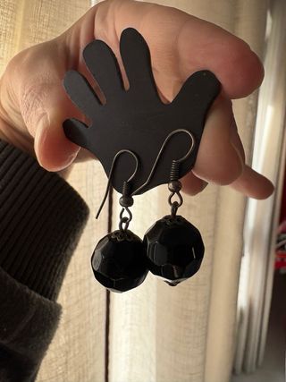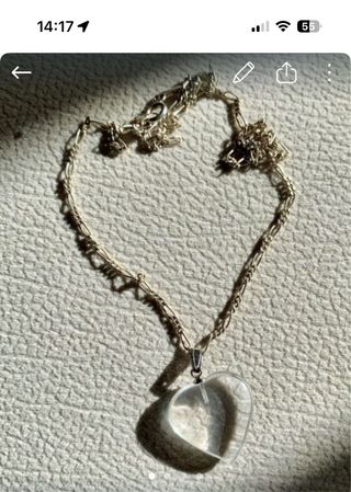 Conjunto de cadena y colgante con forma de corazón. - Cadena de plata. - Colgante de plastico transparente con forma de corazón. - Pendientes de bola negra