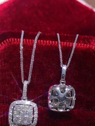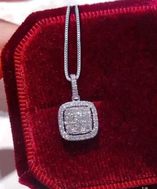 Elegante colgante con un diseño de piedras engastadas en un marco cuadrado. - Colgante con cadena. - Diseño con Circonita cúbica en forma cuadrada. - Acabado brillante.