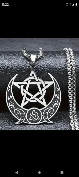 Colgante con diseño de luna y estrella. - Cadena de eslabones plateada. - Símbolo de pentagrama entrelazado. - Diseño de triple luna. Preguntar disponibilidad✅. ❎Mas articulos y accesorios en mi perfil. ❌No vinted go, no inpost usar correos o seur❌.