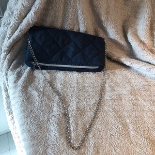 Elegante bolso de mano con un diseño acolchado y detalles plateados. - Acolchado en forma de rombos. - Cremallera frontal plateada. - Cadena plateada para llevar al hombro o cruzado.