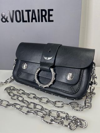 Bolso Zadig & Voltaire modelo Kate Wallet. - Diseño en piel negra. - Detalles metálicos plateados. - Cadena para llevar al hombro o cruzado. Está prácticamente nuevo, se ha usado un par de veces.