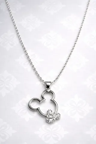 Precioso colgante con diseño de Mickey Mouse, adornado con brillantes circonitas. - Colgante con forma de cabeza de Mickey. - Detalles de circonitas incrustadas. - Cadena fina plateada. -Su precio en web es de 19,90€