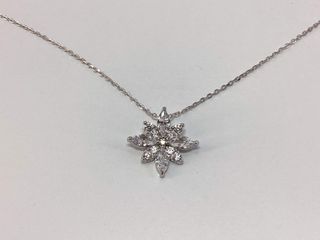 Juego de joyería compuesto por un colgante y un par de pendientes de plata de ley. - Diseño moderno con detalles brillantes. - Cadena fina y delicada.