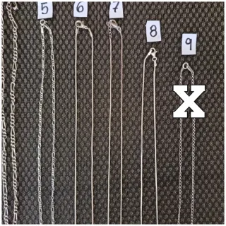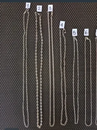 --- OJO --- Antes de realizar la compra, háblame. Conjunto de ocho cadenas de plata y rodio con diferentes diseños: 1- Plata 31 cm - 17 € 2- Plata 30 cm - 18 € 3- Plata 29,5 cm - 17 € 4- Plata 25 cm - 14 € 5- Plata 22 cm - 13 € 6 y 7- Rodio 22 cm - 10 €/un 8- Rodio 19,5 cm - 9 € 9- Plata 18 cm - 12 € **VENDIDO**