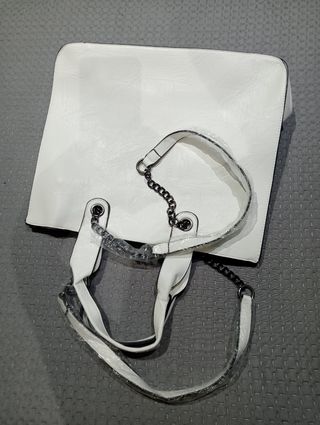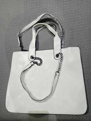 Bolso blanco elegante y moderno, perfecto para cualquier ocasión. Aún conserva su embalaje original. - Diseño espacioso. - Asas cómodas. - Cadena decorativa plateada.