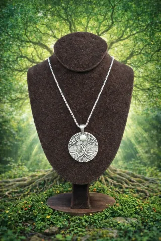 Colgante con diseño de Árbol de la Vida. - Colgante de aleación. - Cadena de eslabones plateada de acero inoxidable.