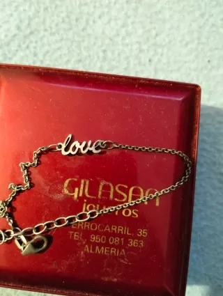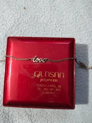 Elegante pulsera con la palabra LOVE grabada. - Diseño delicado en plata. - Cierre de cadena ajustable.
