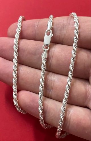 Dale un toque de elegancia a tu estilo con esta espectacular cadena cordón elaborada en plata 925 auténtica. Su diseño macizo, brillante y resistente la convierte en una pieza ideal tanto para uso diario como para ocasiones especiales. Sus medidas son 60cm largo y 0.30cm grosor.