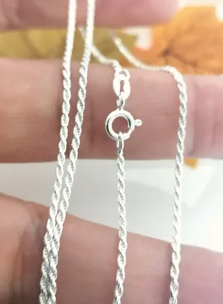 Elegante cadena tipo cordón de 60 cm de longitud y 0.15 cm de grosor. Sólida plata de ley. - Fabricada en plata de ley 925. - Diseño tipo cordón trenzado.