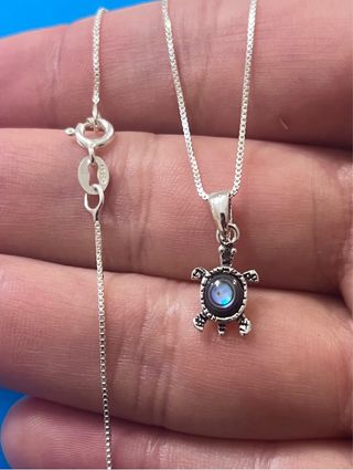 Bello 😍 Collar con colgante de tortuga 🐢 natural Avalon con cadena de plata de ley. Diseño elegante y muy original 💕 ideal para regalo 🎁 - Colgante con detalle de 🐢 mide la mini tortuga 13 mm x 11 mm. - Cadena de plata de ley de 40 cm. Sellado ambos 925