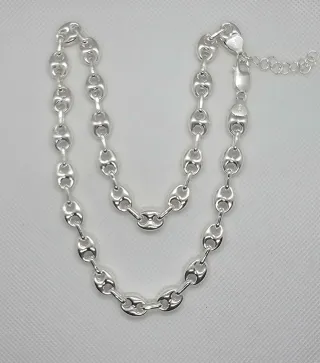 Elegante cadena de plata 925 con eslabones tipo calabrote. - Material: Plata de ley 925. - Diseño: Eslabones calabrote. - Acabado: Brillante. - Largo: 47cm + 4cm - Peso: 33.79 gramos - Grosor: 9.22 mm La cadena esta en perfecto estado, acepto envio. Siento la subida de precio pero la plata a subido mucho en los ultimos meses y me han subido ami el precio, lo siento de veras.