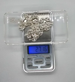 Elegante cadena de plata 925 con eslabones tipo calabrote. Un accesorio clásico y versátil. - Material: Plata de ley 925. - Diseño: Eslabones calabrote. - Cierre: Mosquetón. - Largo: 50cm + 4cm - Peso: 27,16 gramos - Grosor: 7.63 mm La cadena esta en perfecto estado, acepto envio. Siento la subida de precio pero la plata a subido mucho en los ultimos meses y me han subido ami el precio, lo siento de veras.