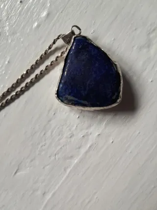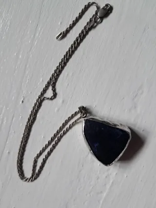 Colgante con piedra natural de Sodalita y cadena de plata. - Piedra de Sodalita de forma irregular. - Cadena tipo cordón de plata.