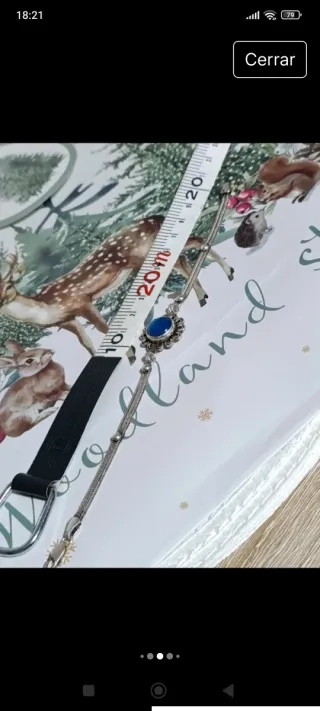 Plateada, queda pegada a la piel porque la cadena es plana. El osito está hecha de brillantes. Nueva a estenar