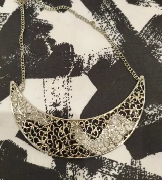Conjunto de tres collares largos con un diseño elegante. - Diseño de media luna calada. - Cadena fina plateada. - Cierre de mosquetón.