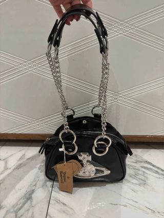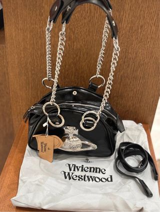 Bolso de mano Vivienne Westwood Archive en color negro. Presenta un diseño elegante con detalles metálicos. - Asa superior. - Cadena metálica plateada. - Logo Orb metálico. - Incluye bolsa guardapolvo. - Nuevo. - Envío 24/48 h