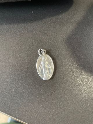 Medalla ovalada con la imagen de la Virgen. - Diseño detallado de la figura. - Colgante con asa para cadena.