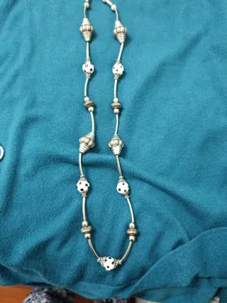 Conjunto de dos collares de la marca Avon. - Un collar con cadena color cobre y cuentas en tonos rosados y marrones. - Otro collar con cadena plateada y colgantes circulares blancos. Los tengo hace años pero apenas los he usado en una o dos ocasiones. Si te gusta uno y lo compras te regalo el otro.